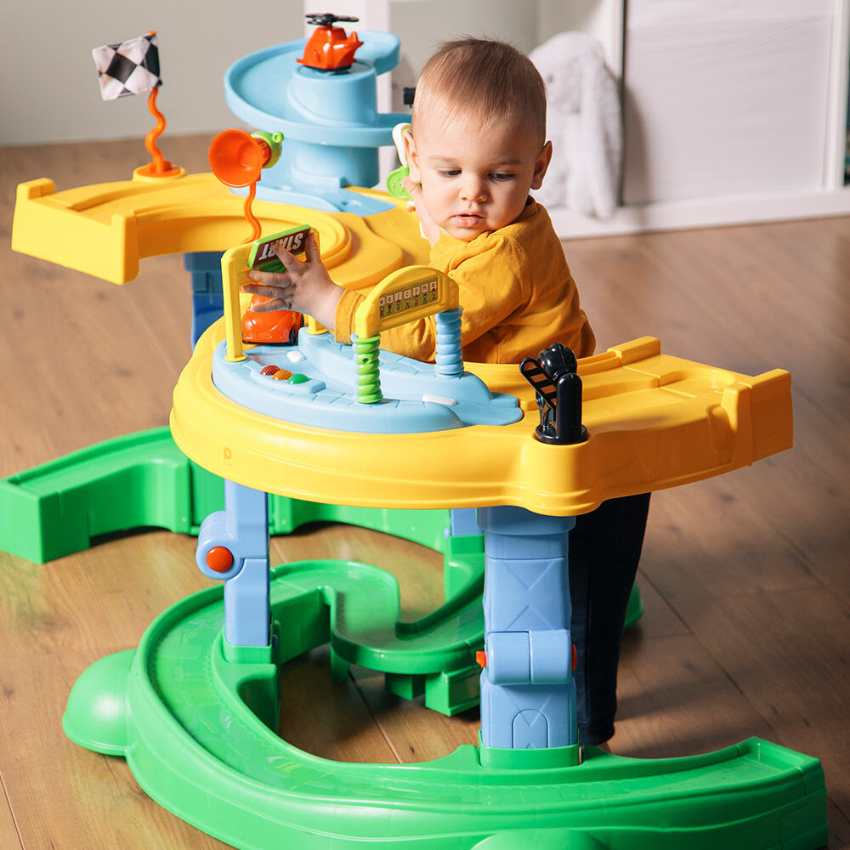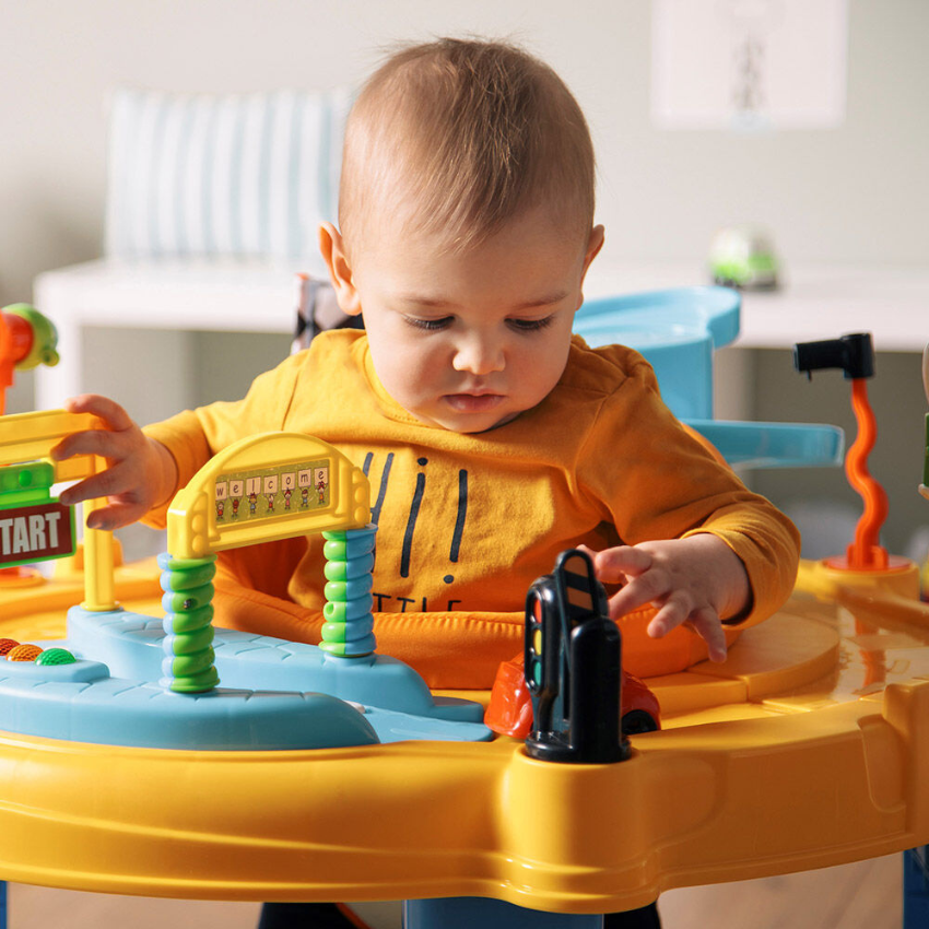 Bébé est donc suspendu, tout en pouvant bouger à sa guise. Le trotteur est généralement équipé d’un dossier qui permet à l’enfant de s’appuyer et de se tenir droit, ainsi que d’une tablette devant lui. En poussant avec ses pieds, il peut aller dans n’importe quelle direction et explorer l’espace. Même s’il permet à votre enfant de se déplacer et de gigoter, le trotteur est avant tout à considérer comme un accessoire d’éveil.
